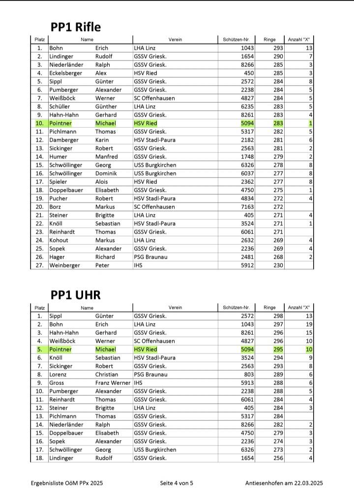 PP1 UHR: Platz 5 von 18 mit 295 Ringen